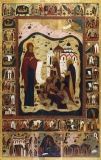 Особенностью иконы является изображение на ней, кроме Спасителя и Божией Матери, предстоящих святых угодников Божиих: святителей Петра, Алексия, Ионы и Филиппа, митрополитов Московских, блаженных Василия и Максима, преподобной Параскевы, святителя Василия Великого, апостола Петра, Алексия, человека Божия, апостола Симеона, сродника Господня, мученицы Параскевы и преподобномученицы Евдокии.