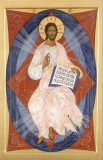 Христос пишется благословляющим правой рукой, держащим в левой Книгу (символ Благовестия и Книги жизни)