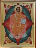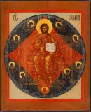 Спас в силах — центральное изображение в иконостасе православного храма. Характерной особенностью икон этого плана является то, что восседающий на престоле Спаситель изображается на фоне трех особых геометрических фигур: красного ромба (квадрата), вписанного в синий овал (круг, эллипс), который, в свою очередь, «наложен» на красный четырехугольник, в углах коего, выступающих из-за контура овала, расположены символы четырех Евангелистов, по одному в каждом углу (орёл — знак Иоанна, ангел — Матфея, телец — Луки, Лев — Марка).