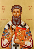 О, треблаже́нная и честна́я вои́стину и превожделе́нная главо́, безмо́лвия держа́во, мона́шествующих сла́во, о́бщее богосло́вов и отце́в и учи́телей украше́ние, апо́столов сподви́жниче, испове́дников и му́чеников безкро́вный ревни́телю и венча́телю словесы́ и дея́ньми и благоче́стия побо́рниче и воево́до взбра́нный, боже́ственных догма́тов высо́кий изъясни́телю и учи́телю, пре́лести многоразли́чных ересе́й потреби́телю, всея́ Це́ркве Христо́вы предста́телю, и стра́же, и изба́вителю! Ты́ и преста́влься ко Христу́ назира́еши у́бо и ны́не ста́до твое́ и всю́ Це́рковь свы́ше, боле́зни разли́чныя исцеля́я и словесы́ твои́ми вся́ управля́я, и е́реси изгоня́я, и многообра́зных страсте́й избавля́я. Приими́ же и на́ше сие́ моле́ние и изба́ви на́с от страсте́й и искуше́ний, и треволне́ний, и бе́д, и осла́бу и ми́р и благоде́нствие на́м пода́ждь, о Христе́ Иису́се Го́споде на́шем, Ему́же сла́ва и держа́ва подоба́ет со безнача́льным Его́ Отце́м и Животворя́щим Ду́хом, ны́не и при́сно и во ве́ки веко́в. Ами́нь.