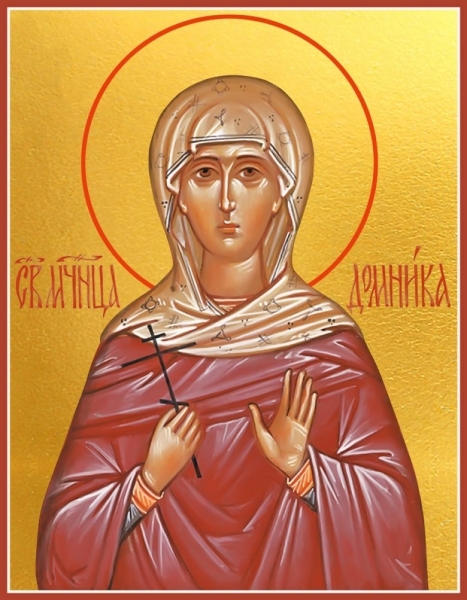 Святая мученица Домника пострадала за исповедание христианства в 286 году. Жила Домника в Киликийской области. Страшные истязания претерпела мученица за святую веру. По приказу правителя Лисия ее долго били, жгли огнем. Вся истерзанная, святая Домника была брошена в темницу, где и скончалась.