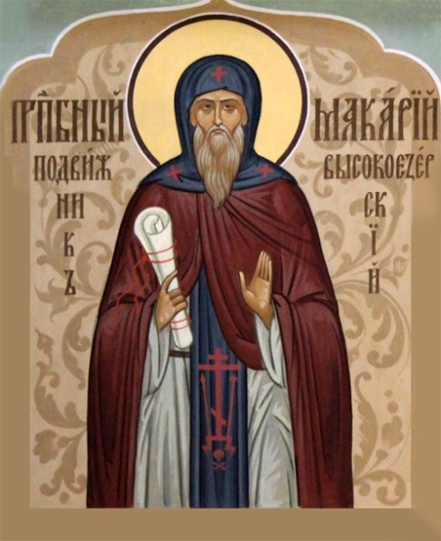 9 июня, в день памяти преподобного Кирилла Белозерского, Макарий после всенощного бдения возвращался в свою келью. Вдруг озарил его великий свет. Он пал на землю и услышал глас: «Услышана твоя молитва. На запад иди. Там тебе уготовано место…». Макарий встал и на западе увидел огненный столп, восходивший от земли до неба. Получив от игумена благословение на отшельническую жизнь, старец отправился на место видения, которое указывал ему светозарный столп. Через несколько дней пути он пришел к Нажмозеру. Чуть южнее из Чаймозера вытекала Оять. Здесь начинались владения Ильинского Веницкого погоста. У Нажмозера Макарий повернул на север и вскоре достиг озера Высокого. Посреди круглого озера монах увидел островок и почувствовал: вот оно – место его отшельничества. Макарий поселился на восточном сухом берегу. От его нового жилища до родной деревни на Ояти оставалось менее ста верст. Тропинка шла вдоль озёр и речек, и все они, за исключением Высокого озера, соединялись друг с другом. Старец Макарий прокопал канаву из Высокого озера в Варьозеро, и теперь он мог попасть водным путем и в Веницы, и в ближайшие деревни на Шатозере.