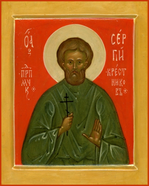 Преподобномученик Сергий (Сергей Александрович Крестников) родился 1 июля 1893 года в городе Москве. Окончив школу, он в 1905 году поступил в Московский Покровский монастырь и до 1915 года пел здесь в хоре. Затем в течение двух лет пел в хорах московских церквей и, сделав за это время свой окончательный выбор, поступил в 1918 году послушником в Троице-Сергиеву Лавру; здесь он прожил до закрытия обители в 1922 году. После этого он пел в хоре Пятницкой церкви в Сергиевом Посаде, а в 1928 году стал служить псаломщиком в храме на Кукуевском кладбище, где был похоронен старец Зосимовой пустыни иеросхимонах Алексий (Соловьев). Здесь послушник Сергий был и псаломщиком, и сторожем, и председателем церковного совета.
