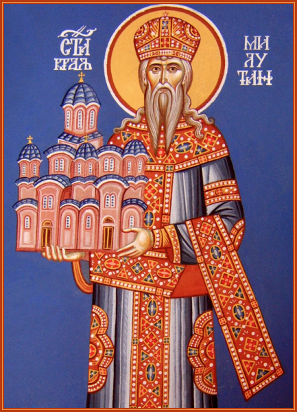 Святой Стефан Милютин, став королем, мужественно, словом и делом, часто с оружием в руках, защищал православных сербов и другие единоверные народы от многочисленных врагов. Благочестивый Стефан не забывал благодарить Господа за все Его благодеяния. Им построено более 40 храмов, множество монастырей и странноприимных домов. Особенно заботился святой об афонских монастырях.