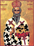 От ю́ности твоея́ всего́ себе́ Го́сподеви отда́л еси́,/ пребыва́я в моли́твах, труде́х и посте́х, о́тче Богоно́сне,/ о́браз был еси́ доброде́тели своему́ ста́ду;/ сего́ ра́ди ви́дя Бог твое́ благо́е произволе́ние,/ поставля́ет тя Свое́й Це́ркви па́стыря и до́бляго архиере́я/ и по преставле́нии твое́м соблюде́ свято́е те́ло твое́ неруши́мо, святи́телю Васи́лие./ Те́мже, я́ко име́я дерзнове́ние,/ моли́ся Христу́ Бо́гу// спасти́ся душа́м на́шим.