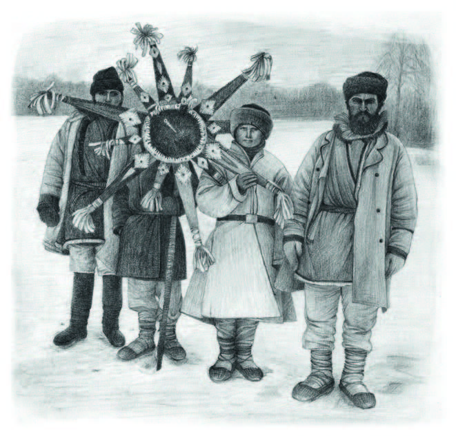 [16] Однорядка — русская верхняя широкая долгополая до щиколотки, мужская и женская одежда с длинными рукавами, под которыми делались прорехи для рук. Застегивалась встык. Носилась внакидку, как плащ. Шилась из одного ряда ткани, то есть не имели подкладки.