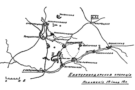 - Глава XXV. Второй кубанский поход. Подготовка Екатеринодарской операции: Кущевка, Кавказская, занятие Ставрополя, Пластуновская