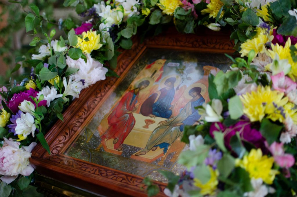 День Святой Троицы наши предки называли «зелеными святками». Храм в этот праздник становится настоящим уголком живой природы. Праздничная, немного детская радость охватывает сердце от этого зелёного великолепия, но особенно, когда прикладываешься к иконе в изящной цветочной раме.