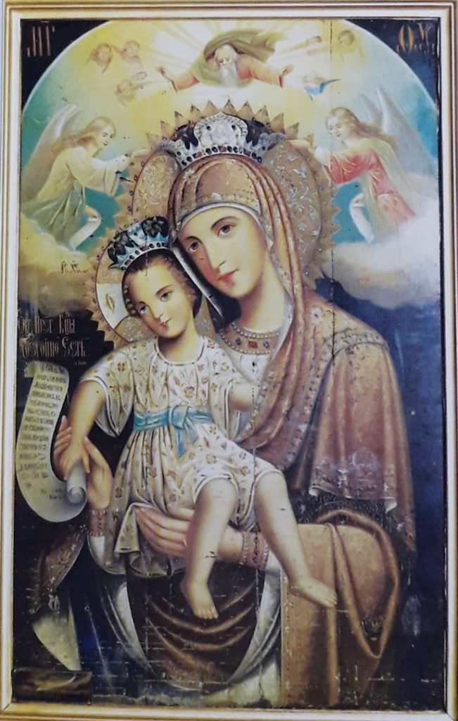 Лет пять назад в мастерскую Барнаула обратились жители города с необычной просьбой: отреставрировать старинную семейную реликвию, икону, которая, по словам владельцев, имеет особое значение. Специалист по иконам, художник-реставратор и автор книги о бытовании афонских икон на Алтае Галина Булгаева сразу узнала в ней работу мастеров с Афона. Икона была передана семье по наследству от бабушки, жившей в отдалённой деревне Усть-Пристанского района, недалеко от села Коробейниково. Именно там проходили знаменитые ярмарки, где члены семьи приобрели этот уникальный образ, написанный в традициях афонского письма.