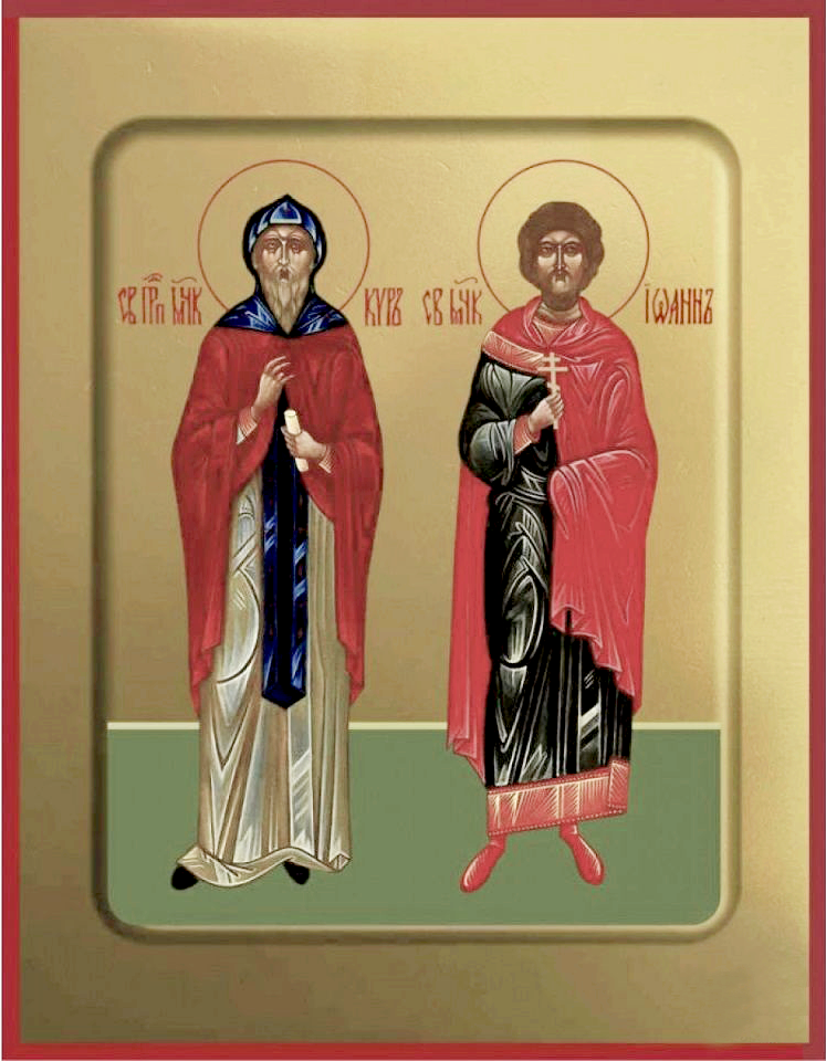 Послушли́ва до сме́рти дво́ица непобеди́мых му́чеников яви́ся, Иоа́нна и Ки́ра,/ Влады́чним Боже́ственным веле́нием,/ те́мже в ру́це Зижди́теля своя́ ду́ши преда́ша.