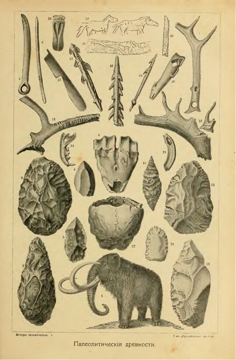 Древнейшие следы присутствия человека на земле, констатированные до сих пор с положительностью, мы встречаем в слоях дилювиальной эпохи, и только последнему поколению удалось неопровержимо доказать палеонтологически существование «дилювиального человека».
