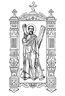 Андрея привязали ко кресту. Несколько тысяч людей толпились около него, негодуя на решение правителя и громогласно восклицая: «Напрасно страдает этот святой муж!» Апостол старался успокоить волнующихся и продолжал учить их слову Божию. «Люди, здесь стоящие, – говорил он, – жены и дети, старики и молодые, рабы и свободные! Послушайте слова мои и не думайте более о суете временной жизни; но посмотрите на меня, висящего на кресте ради Христа и уже готового выйти из сего тела. Не должно страшиться смерти тем, которые подвергаются ей за истину в этом мире; они достигают блаженного успокоения. Одни только рабы греха идут на казнь; очистите себя, братия, не забывайте моего учения; возлюбите искренно веру в Отца и Сына и Святого Духа. Храните заповеди Господа нашего Иисуса Христа и тем явите себя достойными вечного блаженства, которое уготовал Господь любящим Его».