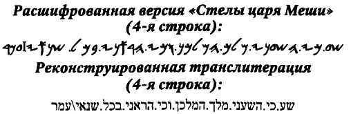 Ш. Клермон-Ганно впервые расшифровав текст «Стелы царя Меши», сделал следующий вывод: «Эта надпись одновременно является противоположной стороной и эквивалентом оригинального текста Библии».19