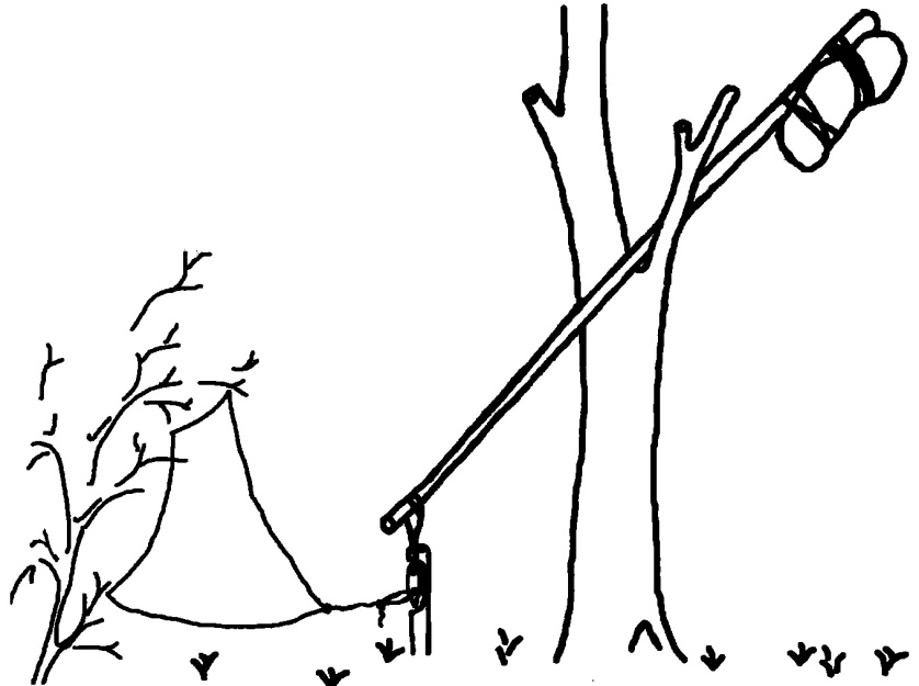 Толстый конец похожей на удилище длинной жердины ещё чем-нибудь утяжеляют. А когда рогулька опоры расположена высоко от земли, то пойманная дичь будет даже опрокинута.