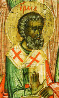 Величаем тя, / апостоле Христов Ермие, / и чтим болезни и труды твоя, / имиже трудился еси // во благовестии Христове.