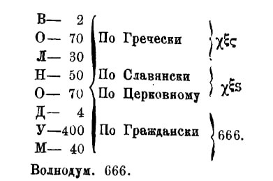 Коль бы светло ни было прикрыто им или начертание, или свойство имени, слова, дела зверина, вот знамение, счисление, число, человеческое слово вольнодума. А кто сим хвалится как непросвещенный просвещенный illuminatus (иллюминат) λαμπετις, тоже число составляет. Итак, никто «просвещенный» меня ничем не удивляет, ежели и чудеса, и силы, и знамения содевает о себе, а не о Христе Иисусе. И о человеческом слове мало нечто сказал. И как пишет некто отец святый, Бога ради добро есть молчать, и Бога ради добро есть говорить, то я по себе избираю зде Бога ради долее не писать, а помолчать, и сим слову человеческому конец дать.