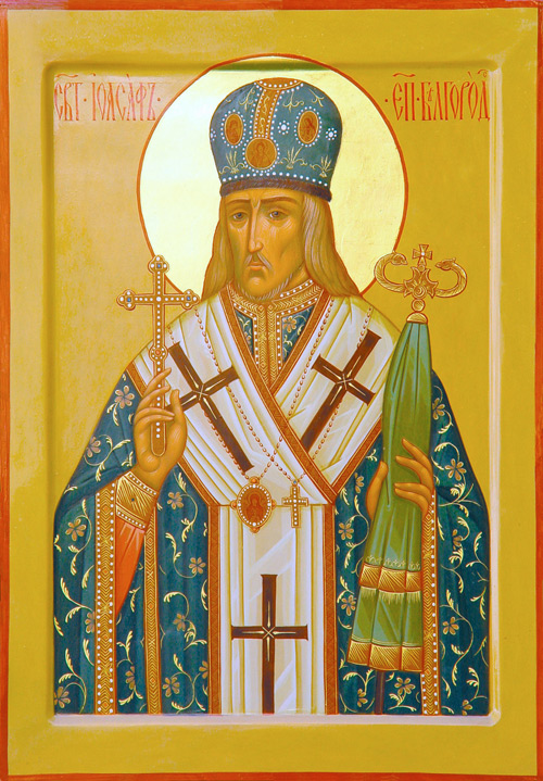О великий угодниче Божий и преславный чудотворче, святителю Иоасафе! От дальних и ближних градов и весей сошедшеся, во еже на месте подвигов твоих помолитися и многоцелебныя мощи твоя облобызати, из глубины сердца взываем к тебе: жезлом благости, якоже пастырь добрый, упаси заблудшия овцы стада Христова, во дворы Господни сия всели, огради нас от соблазна, ересей и расколов, научи во странствиях сущих горняя мудрствовати: рассеянный ум наш просвети и на путь истины направи, охладевшее сердце согрей любовию ко ближнему и ревностию ко исполнению велений Божиих, грехом и нерадением ослабленную волю нашу оживотвори благодатию Духа Всесвятаго: и да твоему пастырскому гласу последующе, сохраним в чистоте и правде души наша, и тако, Богу помогающу, Небеснаго Царствия достигнем, идеже купно с тобою воспрославим Пречестное и Великолепое Имя Отца и Сына и Духа Святаго во веки веков. Аминь.