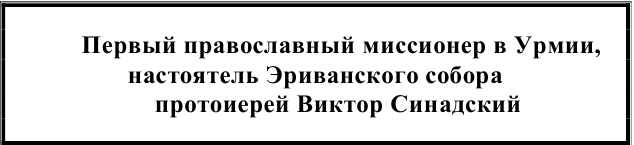 Определением Святейшего Синода от 26 марта 1898 года была учреждена Русская Православная Миссия в Урмии97. Целью самой молодой из миссий Русской Церкви98 являлось оказание содействия епископу Мар-Ионану в деле утверждения Православия как среди его паствы, так и миссионерство среди остальной части ассирийцев урмийской области. Миссия находилась в ведении Грузино-Имеретинской Синодальной конторы и сносилась с Синодом через Экзарха-Архиепископа Грузии. Первым начальником Урмийской Миссии был назначен иеромонах (с 1900 г. – архимандрит) Феофилакт (Клементьев). В первый состав Миссии вошли: командированный на четыре месяца в Урмию протоиерей Виктор Синадский, два иеромонаха – Анатолий (Мостинский) и Тихон (Мурайченко), монах Вячеслав (Маршалек), диакон Михаил Саргизов и псаломщик Василий Мамонтов. За начальный период своего пребывания в Урмии Миссия присоединила к Православию приблизительно 15 тысяч ассирийцев, включая духовенство. Была налажена сеть церковно-приходских школ в ассирийских селениях. От шаха персидского был получен в дар участок земли в городе, где по проекту и под наблюдением монаха Вячеслава, чеха по национальности и инженера по образованию, была выстроена прекрасная пятикупольная церковь Святителя Николая. Позже, после летнего наступления турецких войск в 1918 году, храм был разрушен курдами, но цокольный этаж сохранился до настоящего времени. В этом помещении была устроена крипта для захоронения духовенства. Во время своей поездки по Урмии автор обнаружил там могилу протоиерея Виктора Синадского, скончавшегося осенью 1898 года. На каменном надгробии выбита надпись: