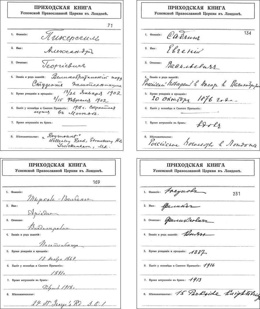 4.6–4.9. Избранные записи Приходской книги Лондонского Успенского прихода