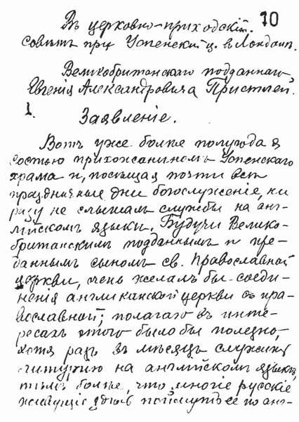С учреждением прихода стена непонимания выросла между престарелым настоятелем и активной частью его новоприбывшей паствы. Ученый о. протоиерей, автор книг и брошюр, обсуждавший церковные дела со многими видными деятелями Церкви и государства (в архиве церкви отложилось более 400 писем о. Евгения одному только Константину Победоносцеву), оказался совершенно неготовым к встрече с православными христианами, чей ум был увлечен бурными событиями 1917 года (илл. 4.13–4.16). Взаимное непонимание людей разных культурных традиций еще не раз скажется на жизни лондонской церкви.