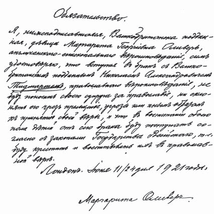4.11. Обязательство невесты-англиканки, выходящей замуж за православного англичанина (написано рукой о. Евгения Смирнова)