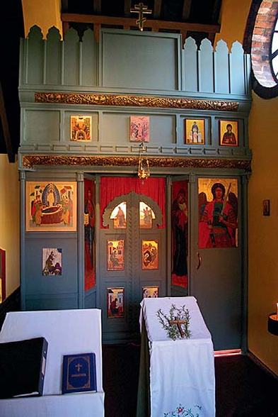 Первый русский приход за пределами Лондона был основан англичанином, клириком Зарубежной Церкви архимандритом Николаем (Гиббсом) (илл. 4.22). Около десяти лет Чарльз Сидней Гиббс служил наставником Цесаревича и страстотерпца Алексея Николаевича. Он последовал за Царской семьей в Тобольск, а позже сумел выехать из России. Поселившись в Оксфорде в 1941 г., о. Николай стал совершать регулярные богослужения, вначале в старинной часовне апостола Варфоломея, а позднее в устроенной им домашней часовне во имя свт. Николая Чудотворца (илл. 4.23). Архимандрит Николай также обустроил православную часовню в Уолсингеме, графство Норфолк, у древнего источника Божией Матери Вальсингамской(илл. 4.24).