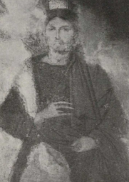 Роспись Дохиара, исполненная около 1568 года (рис. 96), представляет образ Спаса «Великого Архиерея» (Евр. 4:14), в епископском облачении, с Евангелием в руках и с именословным благословением. Ему предстоит Иоанн Предтеча с развернутым свитком. Над Христом надпись: «Царь Царствующих» (1Тим. 6:15) и «Великий Архиерей “, и на Евангелии слова: «Царство Мое не от мира сего» (Ин.18:36).