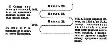 Приспособительно к выражениям египетских жрецов можно говорить, что в 139 году по Рождестве Христовом солнце в третий раз взошло на западе, а в 1600 году в третий раз закатилось на востоке. Мы живем в начале 27 цикла, который кончится в 3061 году. Тогда солнце в четвертый раз взойдет на западе.