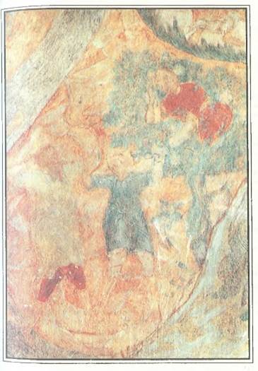 В 70-х годах XIV века в Новгороде были расписаны два, ныне разрушенные храма: ц. Спаса на Ковалеве (1375 г.) и ц. Успения на Волотовом поле (конец 70-х гг. XIV в.). Если стенописи церкви Спаса на Ковалеве были проникнуты духом сурового аскетизма, и их можно было рассматривать как своеобразную реакцию правящих кругов на «ересь стригольников»85, то «волотовские фрески представляли то реалистическое направление, которое питалось живыми народными источниками, и давало наименее церковное истолкование религиозным темам. Не исключена даже возможность, что автор волотовских фресок имел прямое отношение к еретическим движениям»86.