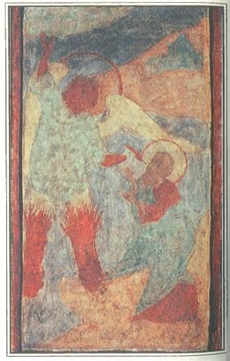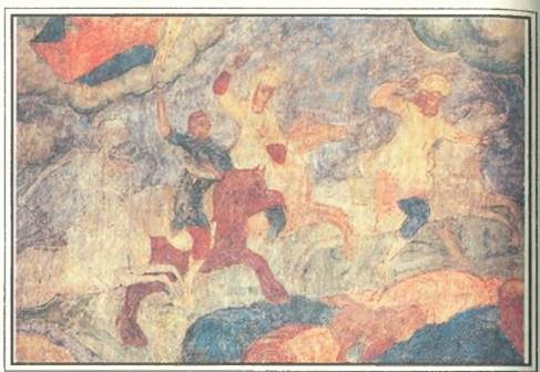 Однако еще Ф. Энгельс писал: «Чувства масс (в эпоху феодализма ― А.К.) вскормлены были исключительно религиозной пищей. Поэтому, чтобы вызвать бурное движение, необходимо было собственные интересы этих масс представлять им в религиозной одежде»62. Вот почему в росписях храмов находили выражение не только официальные взгляды, но зачастую, особенно в периоды обострения общественно-политической борьбы, в них пропагандировались идеи, резко противоположные господствующим официальным воззрениям.