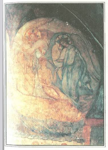 Особенное распространение получили апокрифы в стенописных композициях ХIII-ХIV вв., когда в Константинополе шли ожесточенные споры между варлаамитами и исихастами75, а страны Балканского полуострова переживали пору величайшего подъема экономики и культурной жизни. В 1295 году были созданы фрески церкви Климента в Охриде. Фресковый цикл этого храма, посвященного прежде всего Богородице Перивлепте, свидетельствует о проникновении новых мотивов в традиционную церковную иконографию. Здесь много сцен, связанных с апокрифическими легендами о жизни Богородицы76.