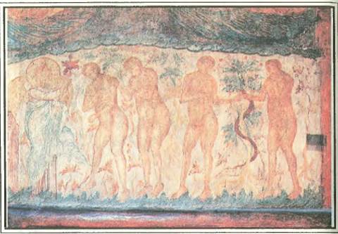 В 1335‒1350 годах был расписан собор монастыря Дечани в Сербии77. В сценах «Дней творения» и «Жизни прародителей» использовано громадное количество апокрифического материала («Создание Адамы и Еввы», где творцом представлен Иисус Христос, «Жертвоприношение Авеля и Каина», «Оплакивание и погребение Авеля», «Каиново потомство», «Ноево опьянение» и т.д.).