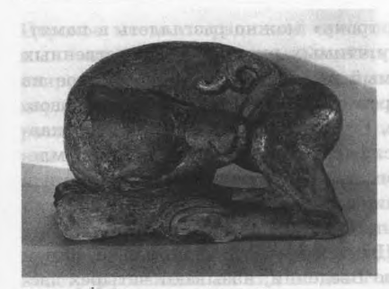 Звери под Царским местом изображены свернувшимися, припавшими на согнутые лапы, с прижатыми ушами и оскаленными зубами. На поверхности фигур сохранились остатки раскраски – белой и охристой, с разделками, выполненными черной краской, имитирующими шерсть. Один из зверей гривой и округлой мордой напоминает льва, два очень похожих зверя с узкой мордой, большими клыками и длинным хвостом могут быть идентифицированы как таинственные оскроганы, и четвертый зверь – без клыков, с длинным высунутым из пасти языком – как уена. Символическое значение этих изображений, существование которого предполагал еще И.Е. Забелин, оставалось до сих пор не разъясненным.