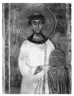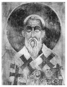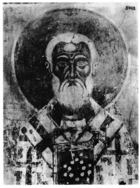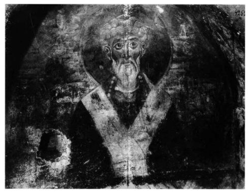 [2] Святитель. Фрагмент росписи башни Антониева монастыря. Новгород, около 1125