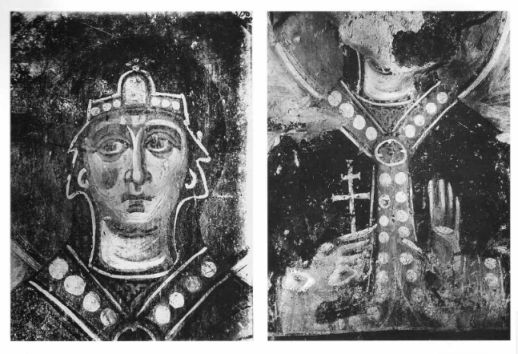Я думаю, что это не противоречит моему мнению о разделении труда над этими святителями между главными мастерами, писавшими лишь головы и сделавшими первоначальным рисунком разметку фигур, которые были написаны подмастерьями. Причем головы в Нередице писались раньше фигур, так как очертания плеч местами находят на пряди волос. Здесь работать одновременно и мастерам, и подмастерьям вполне было возможно, не мешая друг другу. С каждой стороны этого регистра оставалось еще по две фигуры, которые были написаны на двух дополнительных участках грунта. Очевидно, и в упомянутых композициях: Крещение, Рождество, Введение во храм и Сретение четвертый мастер, их писавший, работал над лицами и фигурами, а подмастерья одновременно раскрывали, например, в Крещении, фон, позем и локальные тона горок, воды Иордана и одежд, иначе мастер не мог бы закончить такие большие многофигурные сцены за короткий срок, пока грунт оставался влажным.