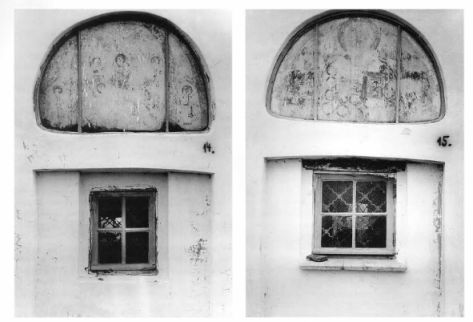 Но благодаря этому нельзя было иметь общего впечатления от росписи в целом. В церкви было очень светло, так как окна имели обыкновенные рамы со стеклами. В то время еще не была сделана реконструкция старинных рам из досок с прорезными кругами и треугольниками.