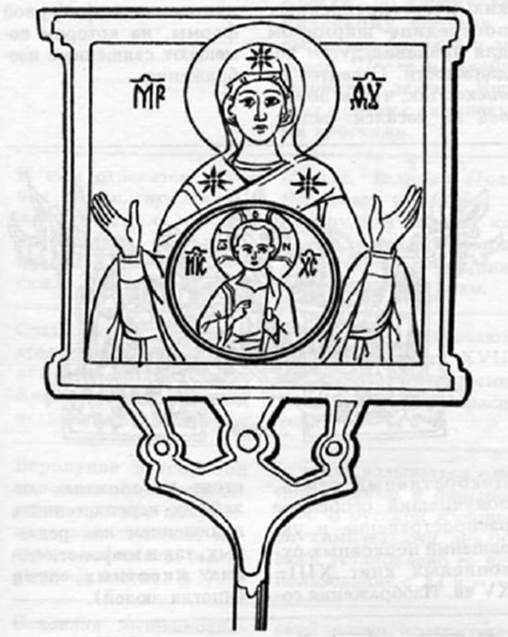 Икона, имеющая снизу рукоять, посредством которой закрепляется в специальную подставку. Устанавливается с восточной стороны за престолом в алтаре. Изображаются Спаситель, Богоматерь, а также святой, в почитание которого освящен престол. Может быть покрыт окладами с обеих сторон.
