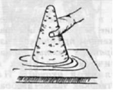 Инструмент конусообразной формы, выточенный из твердого камня или мрамора, стекла или фарфора для растирания пигмента красок на плоской поверхности каменной плиты.