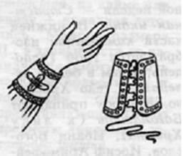 В облачении священников: манжет с Крестом и шнурком. Надевается на запястье, поверх рукава подризника, и зашнуровывается. Крест знаменует Божию силу, крепость и мудрость, необходимые священникам для совершения Божественных таинств.