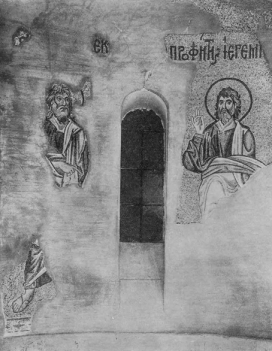 Ср. В.Н. Лазарев. История византийской живописи, т. I, стр. 88–90, 305. Против датировки мозаики вестибюля XI веком говорят пространственное построение всей композиции и статуарное понимание фигуры, находящее себе близкие аналогии в миниатюрах X века (Vindob. theol. gr. 240, Paris, gr. 70 и др.).