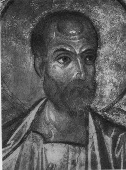 Неизвестный святой. Фреска Благовещенской церкви в Аркашах в Новгороде. 1189 год