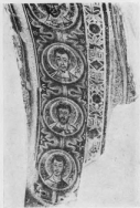 Однако следует подчеркнуть, что на том этапе развития, когда в Равенне утверждаются остготы и когда в ее искусстве явственно намечается процесс варваризации всех форм, дающей стороной являлись не столько Константинополь, сколько такие области, как Сирия и Палестина. Их более примитивная художественная культура была ближе и понятнее быстро варваризировавшемуся обществу, чем сложная и утонченная культура столицы Византийской империи. Вот почему равеннские мозаики VI века обнаруживают так много точек соприкосновения с мозаиками Кипра и Синая. Это отнюдь не означает, что в Равенну приглашали художников с Востока. Мозаики и в VI, и в VII веке продолжали выполняться в Равенне местными мастерами. Но их художественные идеалы настолько сблизились к этому времени с идеалами их восточных собратьев, что между их произведениями нередко бывает трудно провести четкую демаркационную грань.