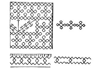 Приводимые рисунки дают общее понятие о близости этих финских узоров к русским в наиболее независимой и самобытной отрасли прикладного искусства – в вышитых узорах на рубашках и полотенцах.