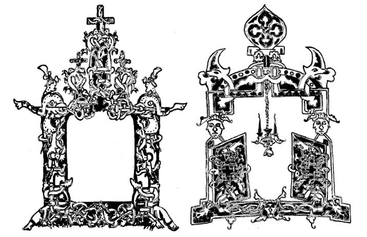 Россия была теперь окружена этим стилем орнаментики со всех сторон, встречала его у всех соседей, не исключая и скандинавов. Звериный стиль захватил почти все области прикладного искусства, но всего пышнее он распустился в орнаментике древних русских рукописей.