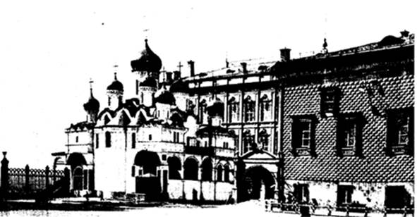 По пышности и великолепию отделки Теремной дворец и построенная еще в 1491 г. итальянцами Марком Руфом и Петром Антонием, но впоследствии значительно переделанная Грановитая палата являлись конечно, исключениями.