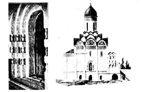 В силу этого приема, наружные очертания верха собора приобретали особую замысловатость и красоту, а внутри – соборный купол, покоящийся на псковских ступенчатых арках, казался значительно выше и стройнее.
