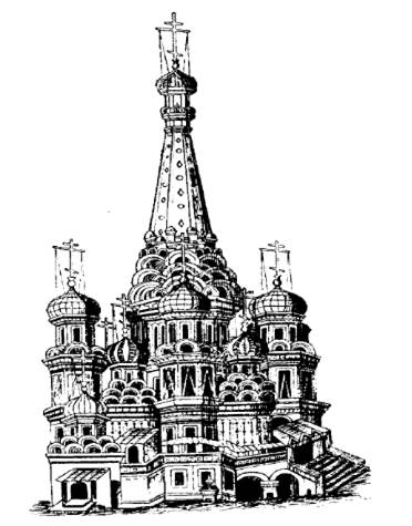 Храм Василия Блаженного наглядно отражал своими девятью престолами на одном основании эту исконную идею русского зодчества, был глубоко самобытен и с этой точки зрения.