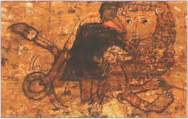 «Когда инок был так стеснен, что уже бежать было некуда, змей устремился, чтобы пожрать его, но тут инок, вспомнив о блаженном царе Елезвое, обратился к змею и сказал: