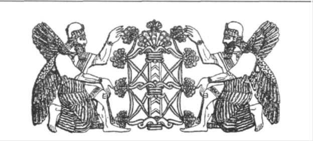 Рис.2."Древо жизни», охраняемое крылатыми гениями. Ассирийский барельеф Британского Музея