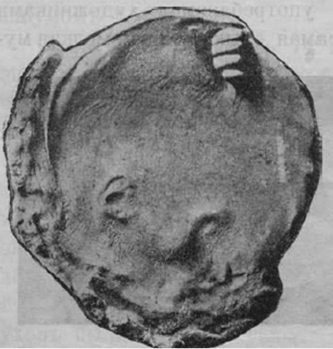 Но, всматриваясь в контур прилагаемого рисунка 70, мы можем ясно отличить на нем, на верху, как будто пальцы руки, а в нижней части рисунка – глаза, нос, рот и уши какого-то субъекта.